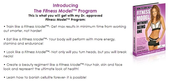 | Jennifer Nicole Lee reveals the beauty, exercise and supplement secrets that can give any woman that sleek and sexy fitness model look. The fitness model program has 12 full weeks of food plans, workouts and beauty secrets. |